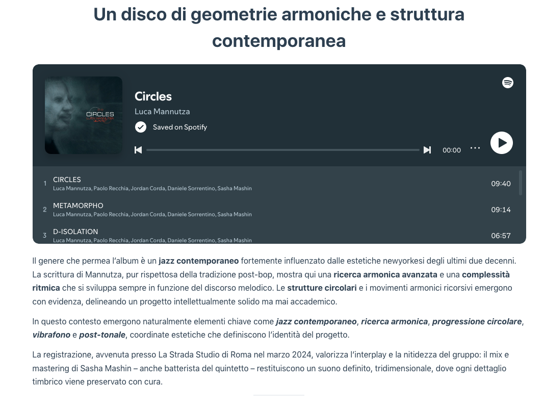 Doppio Jazz:"Luca Mannutza con «Circles»: la forma del pensiero armonico, tra equilibrio mediterraneo, introspezione e struttura" di Francesco Verrina