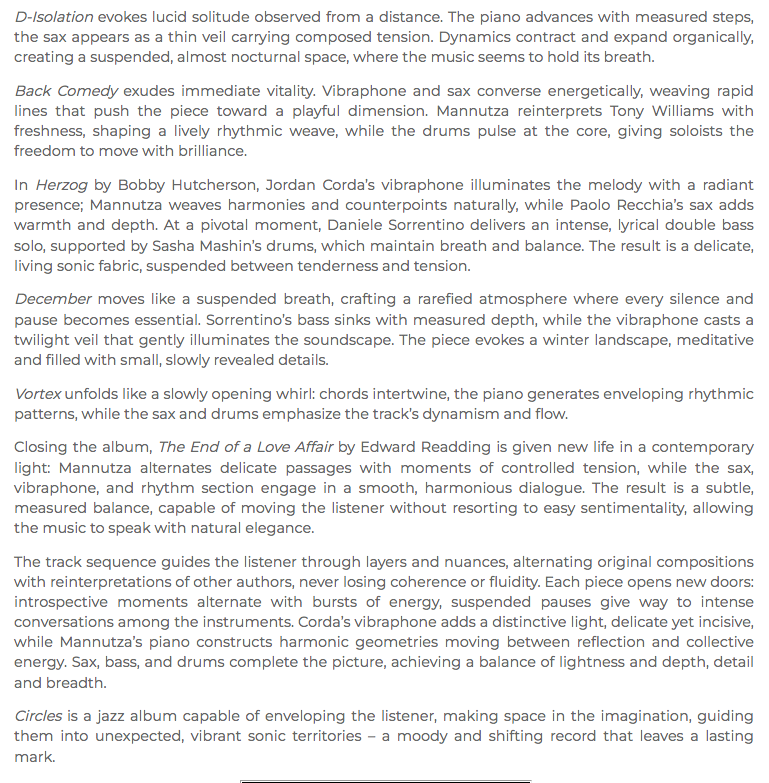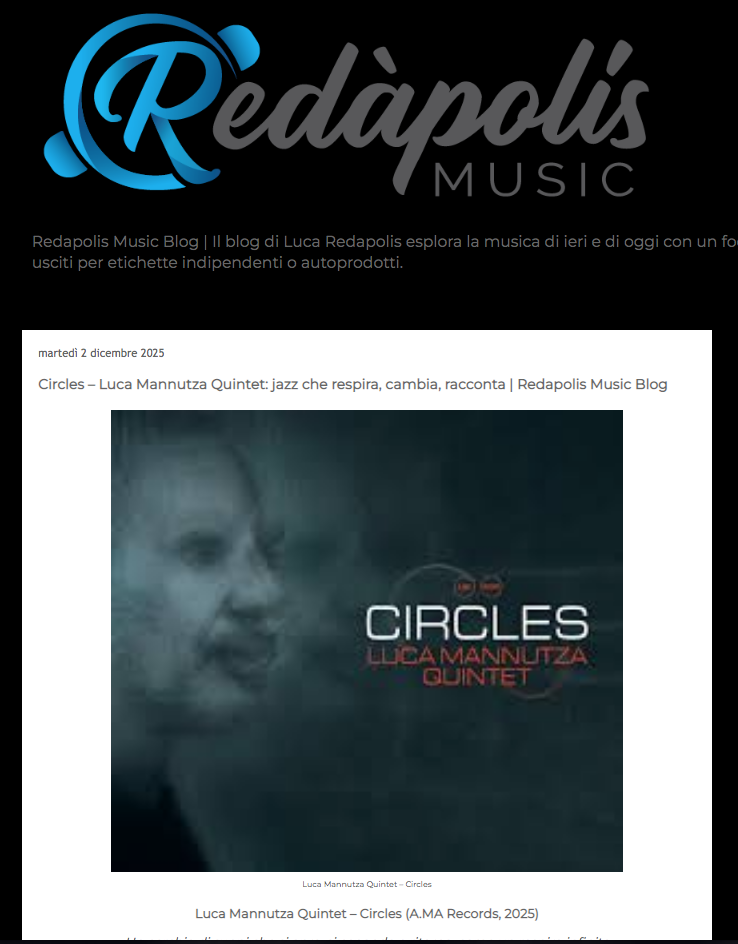 Redapolis Music Magazine - Circles - Luca Mannutza Quintet -A circle of sounds that opens, expands, and returns, like an endless breath. by Luca Paoli