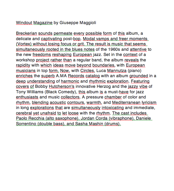 Windout Magazine: Luca Mannutza Quintet "Circles" by Giuseppe Maggioli
