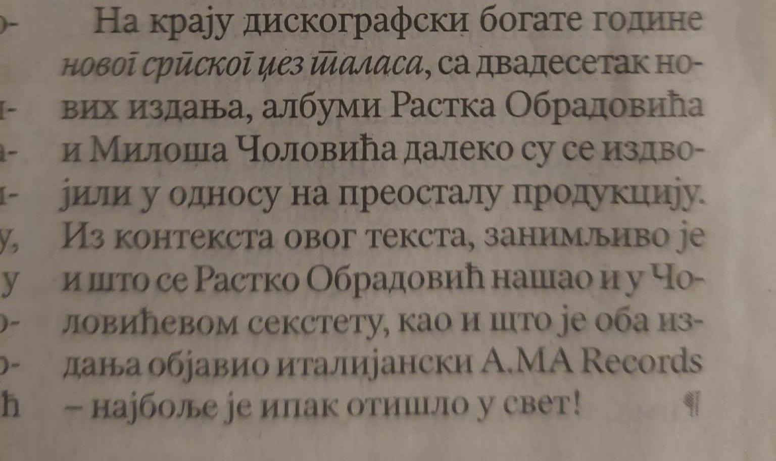 "At The end of Discographically rich yearof the new Serbian Wave, with