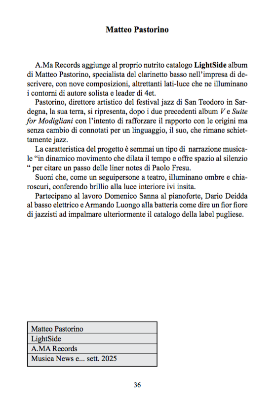 Jazz Parade (Dischi 2024-2025) Matteo Pastorino "Lightside" di Amedeo Furfaro