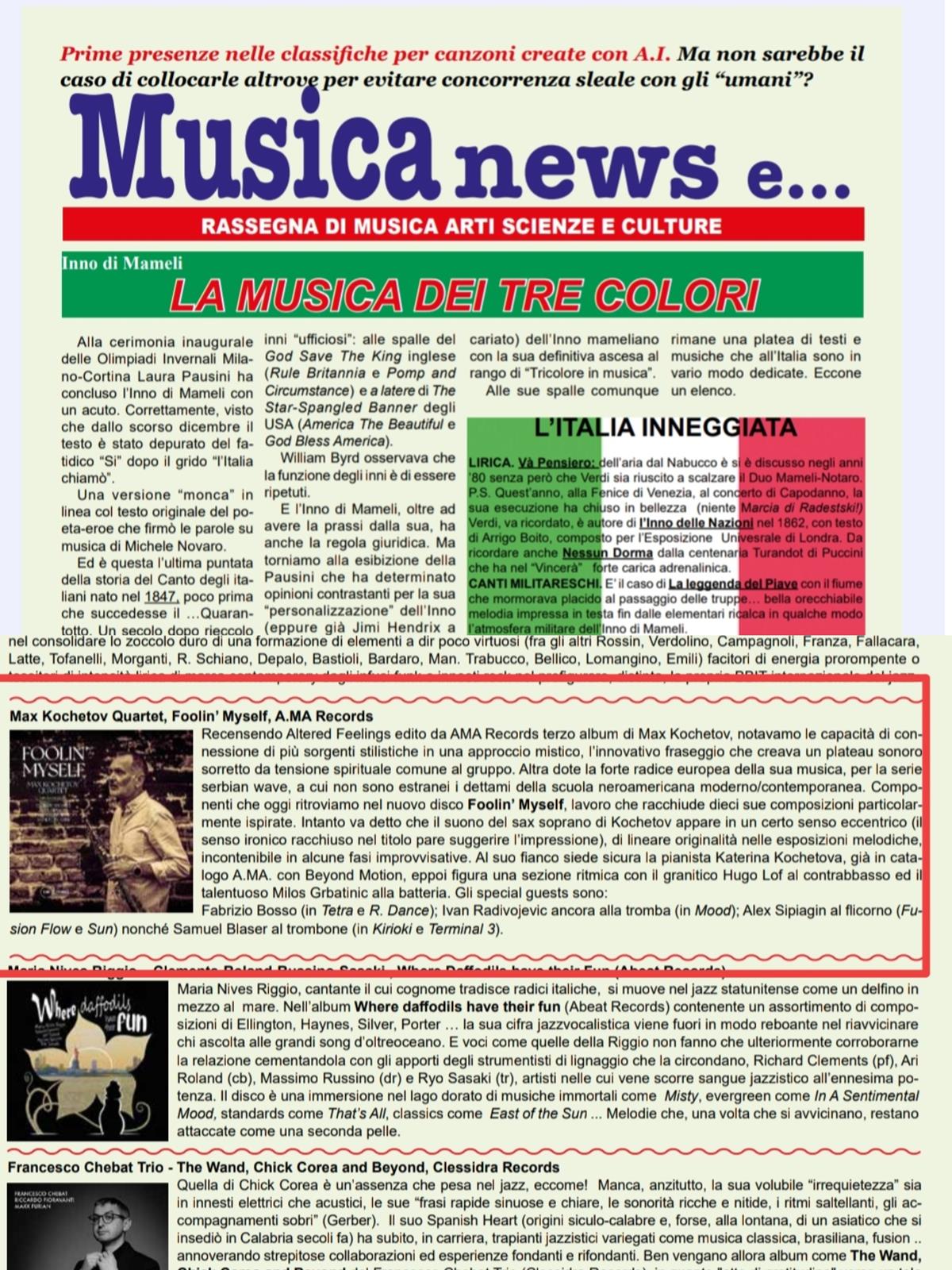 Musica News: Max Kochetov Quartet , Foolin'Myself" by Amedeo Furfaro