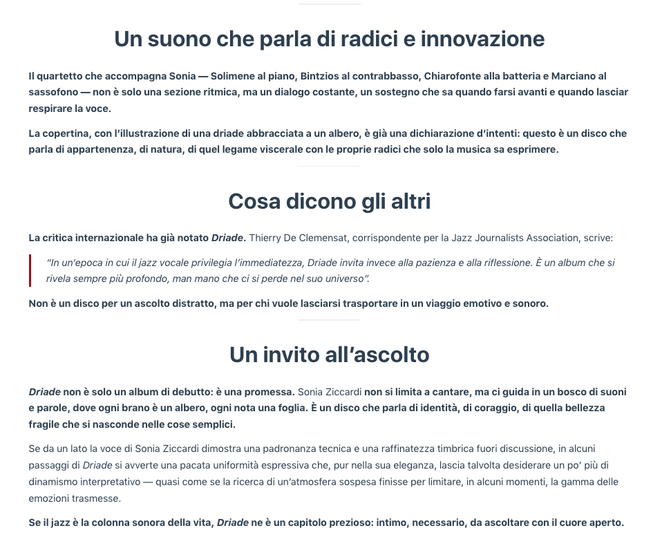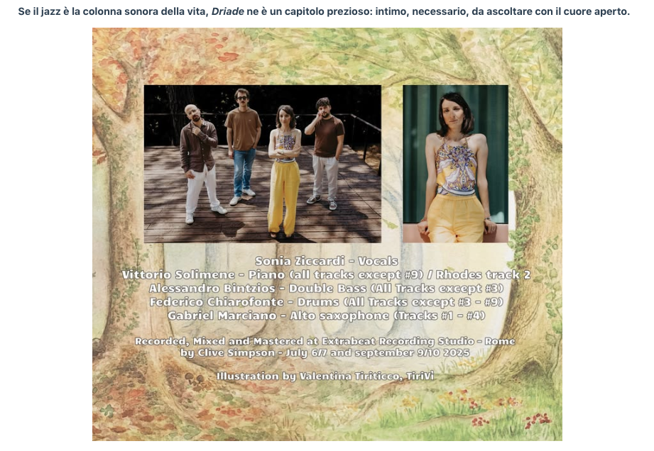 Jazz In Family: Driade - Sonia Ziccardi : una ninfa tra jazz e poesia - Di Mario Ferraioli