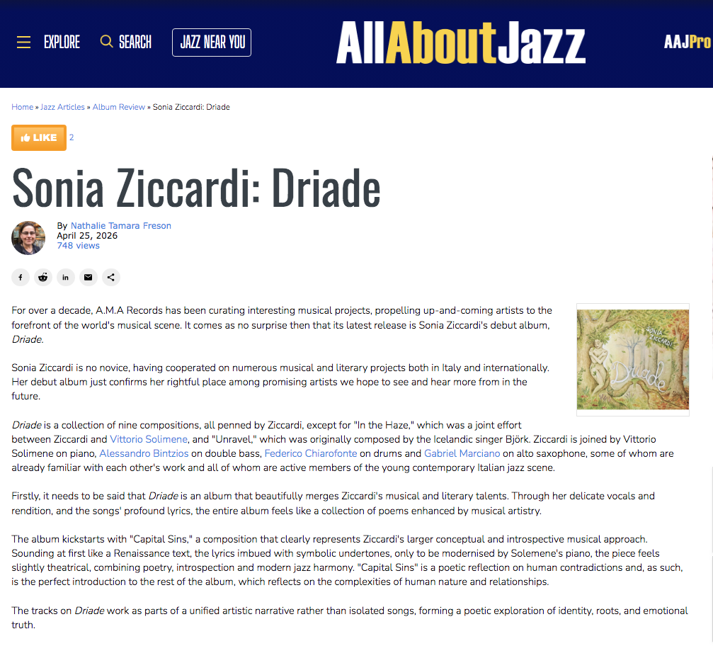 All About Jazz - Sonia Ziccardi: Driade by Nathalie Tamara Freson