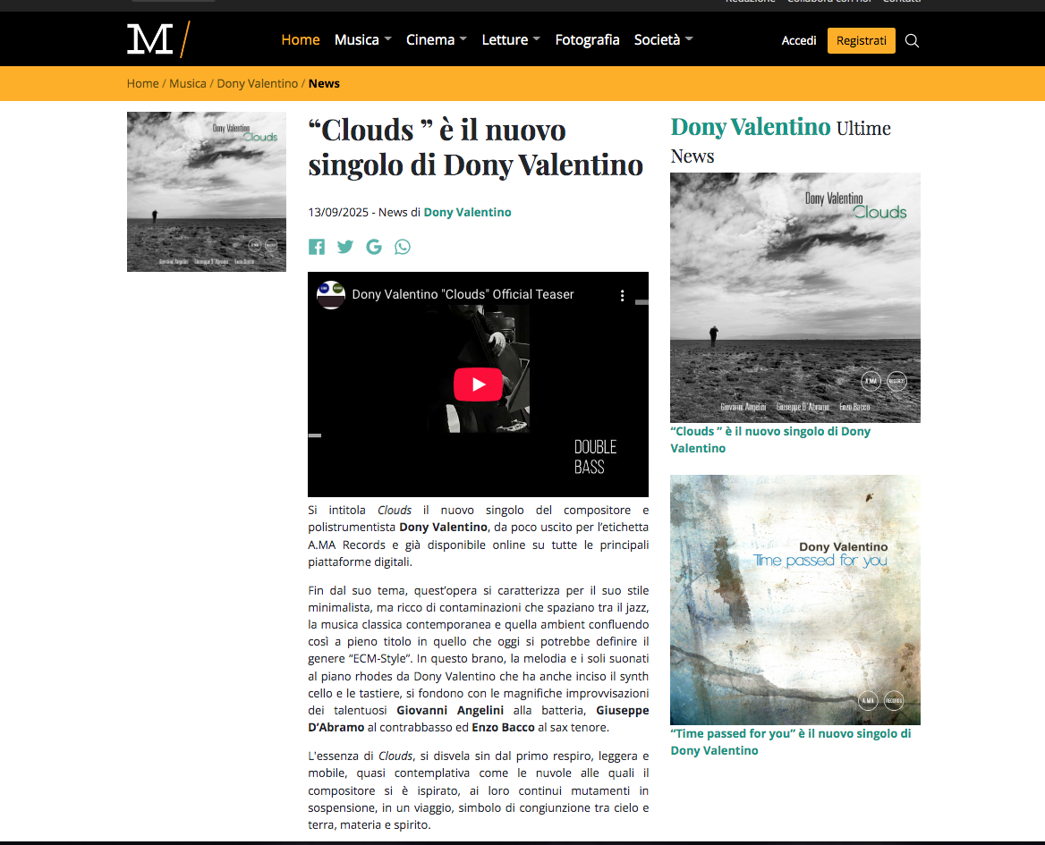 Mescalina: "Clouds" è il nuovo songolo di Dony Valentino