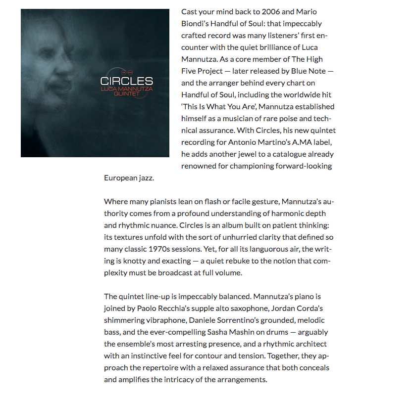 UKVIBE Magazine: Luca Mannutza Quintet "Circles"