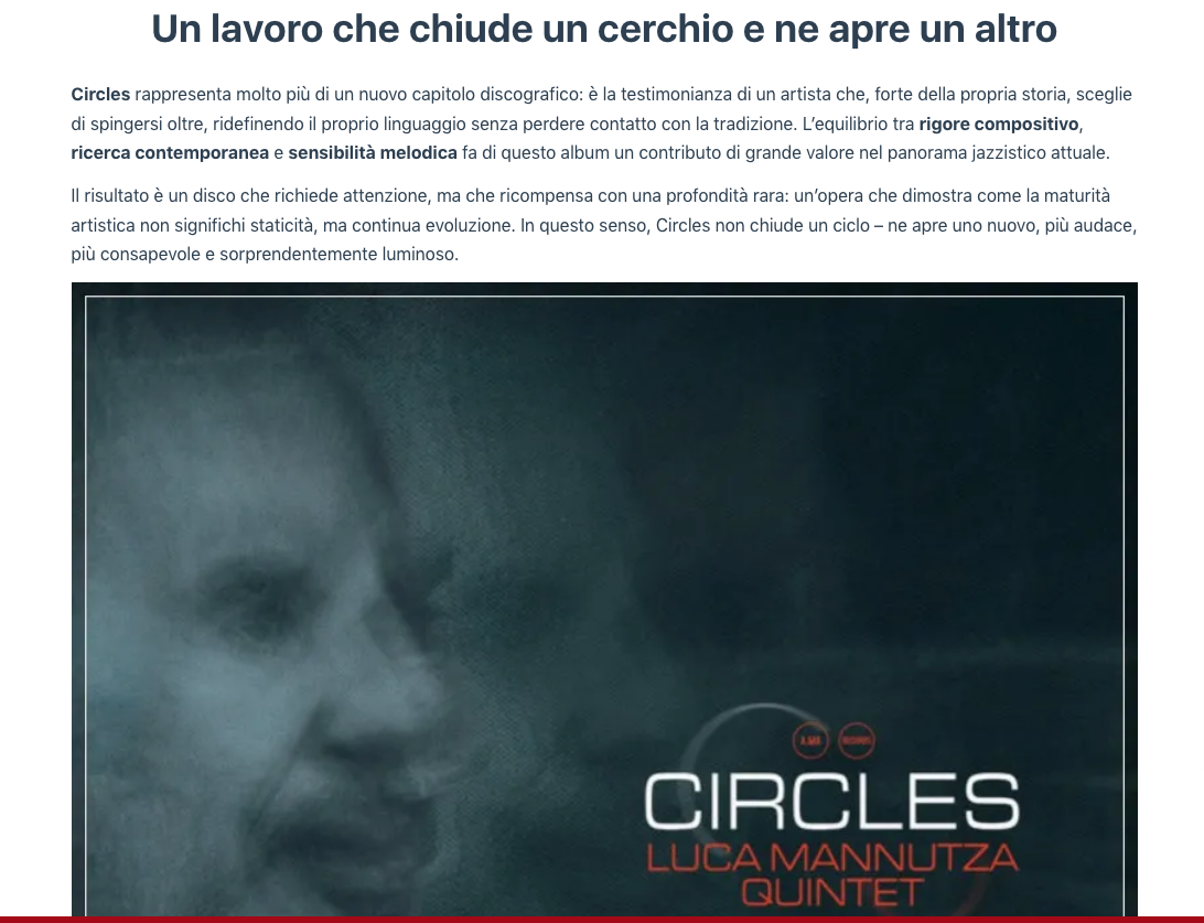 Doppio Jazz:"Luca Mannutza con «Circles»: la forma del pensiero armonico, tra equilibrio mediterraneo, introspezione e struttura" di Francesco Verrina