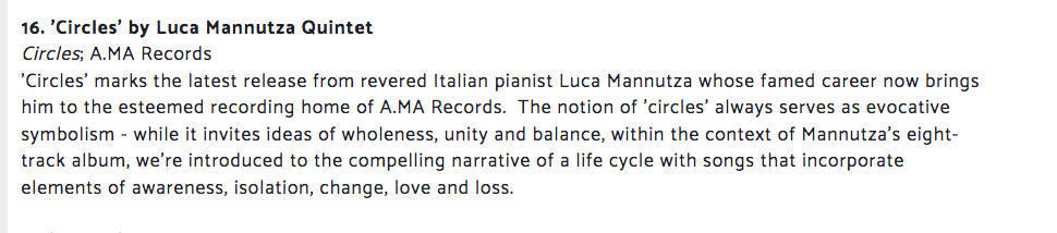 Blue In Green Radio 2025 In 100 songs Including Luca Mannutza Quintet "Circles"