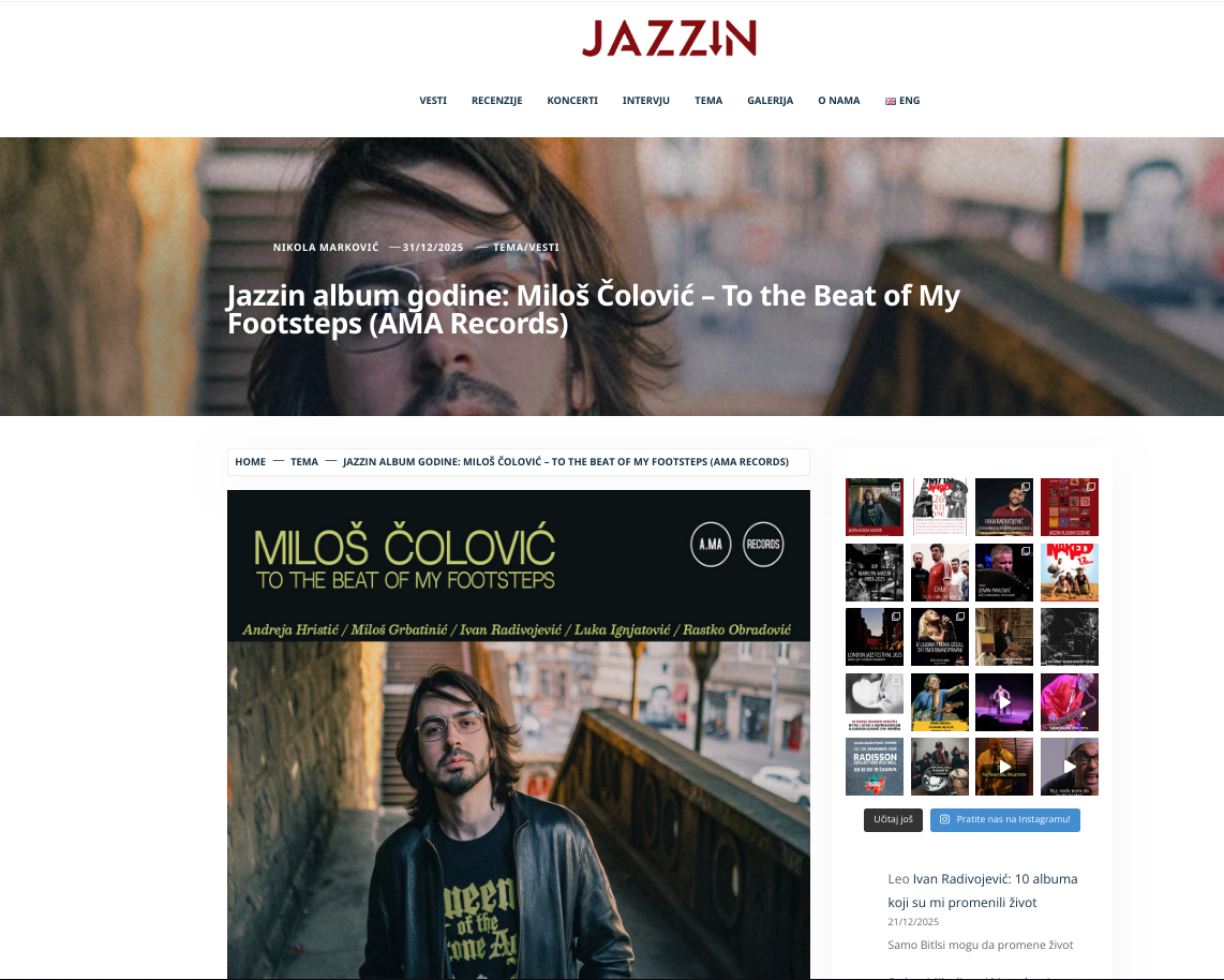 azzin.rs Magazine. 2025 Best Serbian Jazz Album: Milos Colovic "To The Beat Of My Footsteps"
