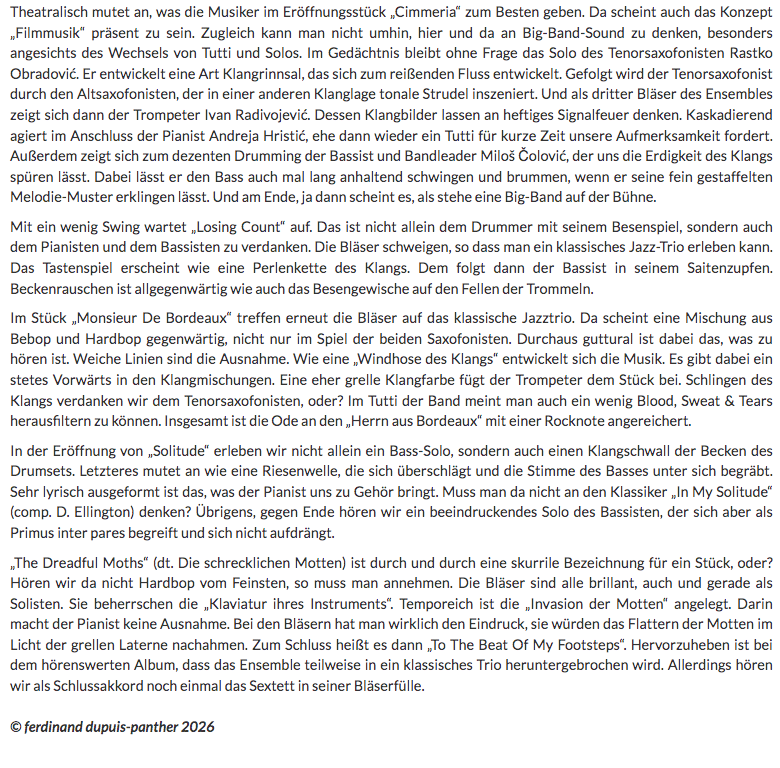 Jazz'halo: Milos Colovic - To The Beat Of My Footsteps - By Ferdinad Dupuis - Panther