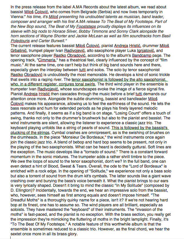 Jazzin.rs Magazine. 2025 Best Serbian Jazz Album:Milos Colovic "To The Beat Of My Footsteps"