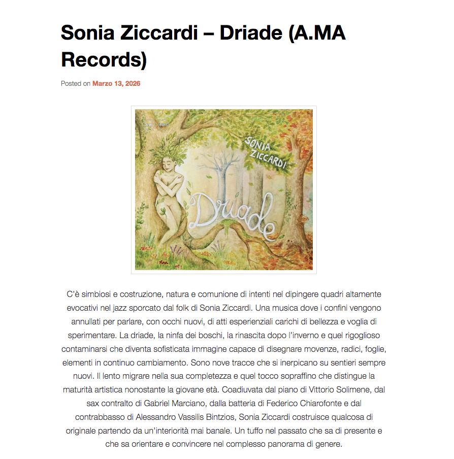 IndiePerCui: Sonia Ziccardi - Driade - di Marco Zordan